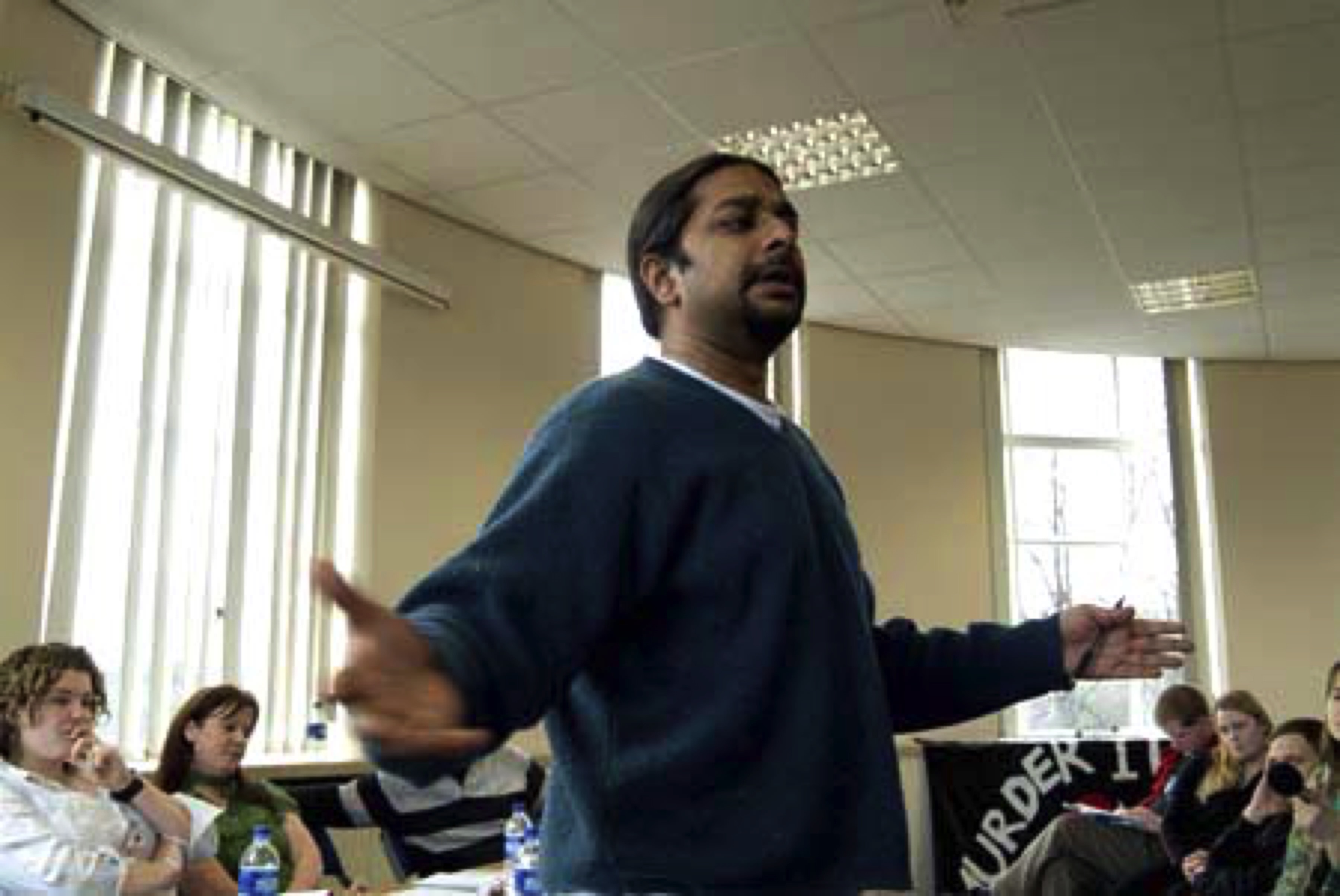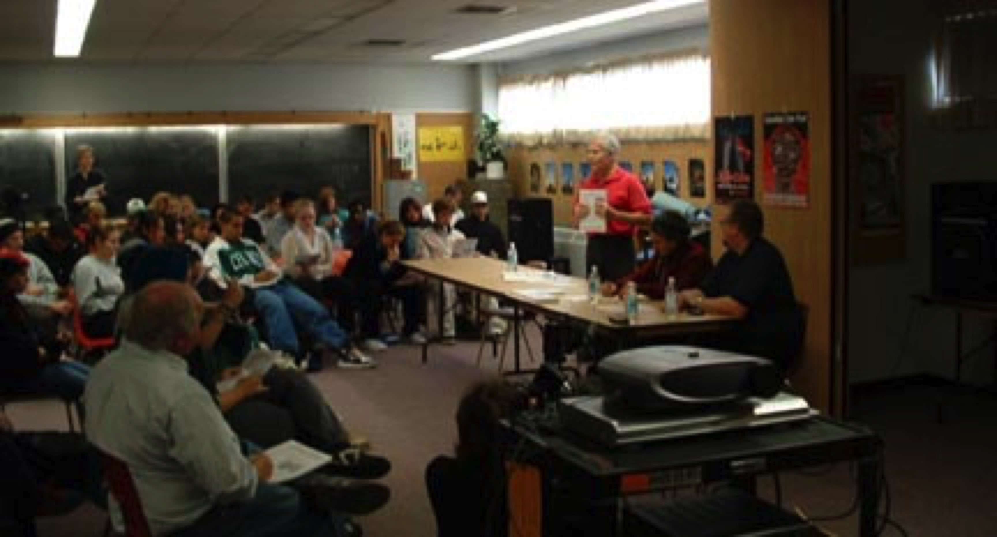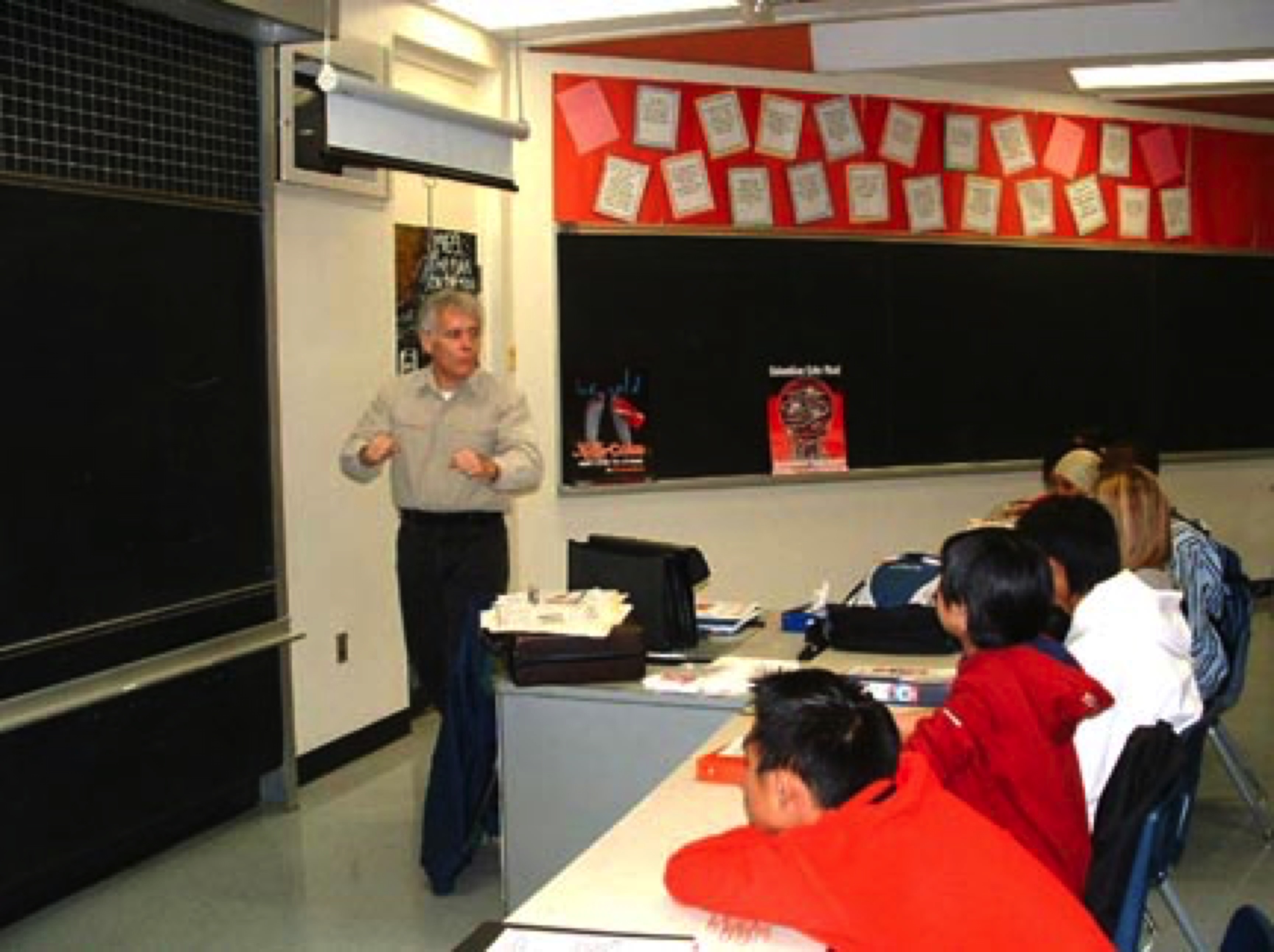 Campaign Director Ray Rogers at Grant MacEwan College in Edmonton, Alberta, Canada