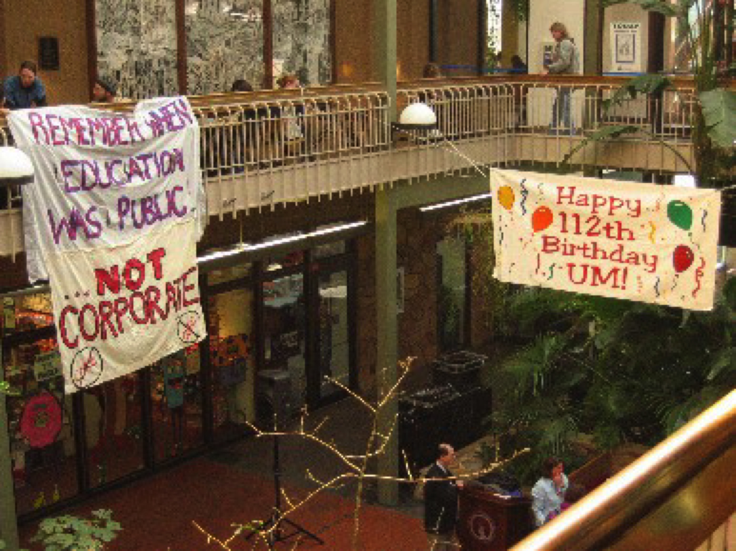 Here are photos of a demonstration two days after UM reinstated Coca-Cola. We had a sign that had UM crossed off and NYU written above it, with a line from our school's fight song "The leaders and the best" (Photo by Adri Miller)