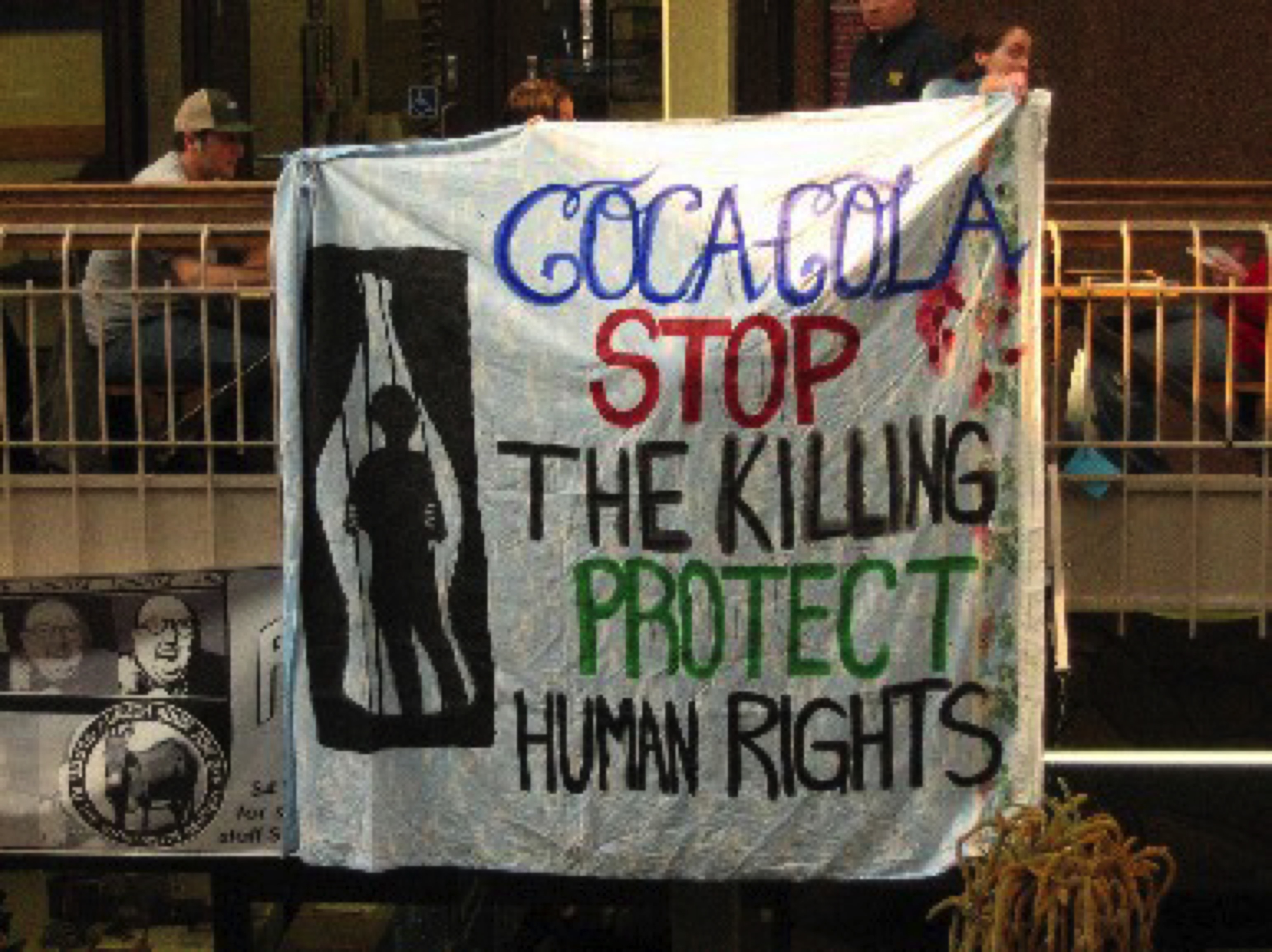 Members of the Vassar Kick Coke campaign created a Coca-Cola Monster with 9 arms, each with the name of a union leader killed in Coca- Cola's Colombian bottling plants.