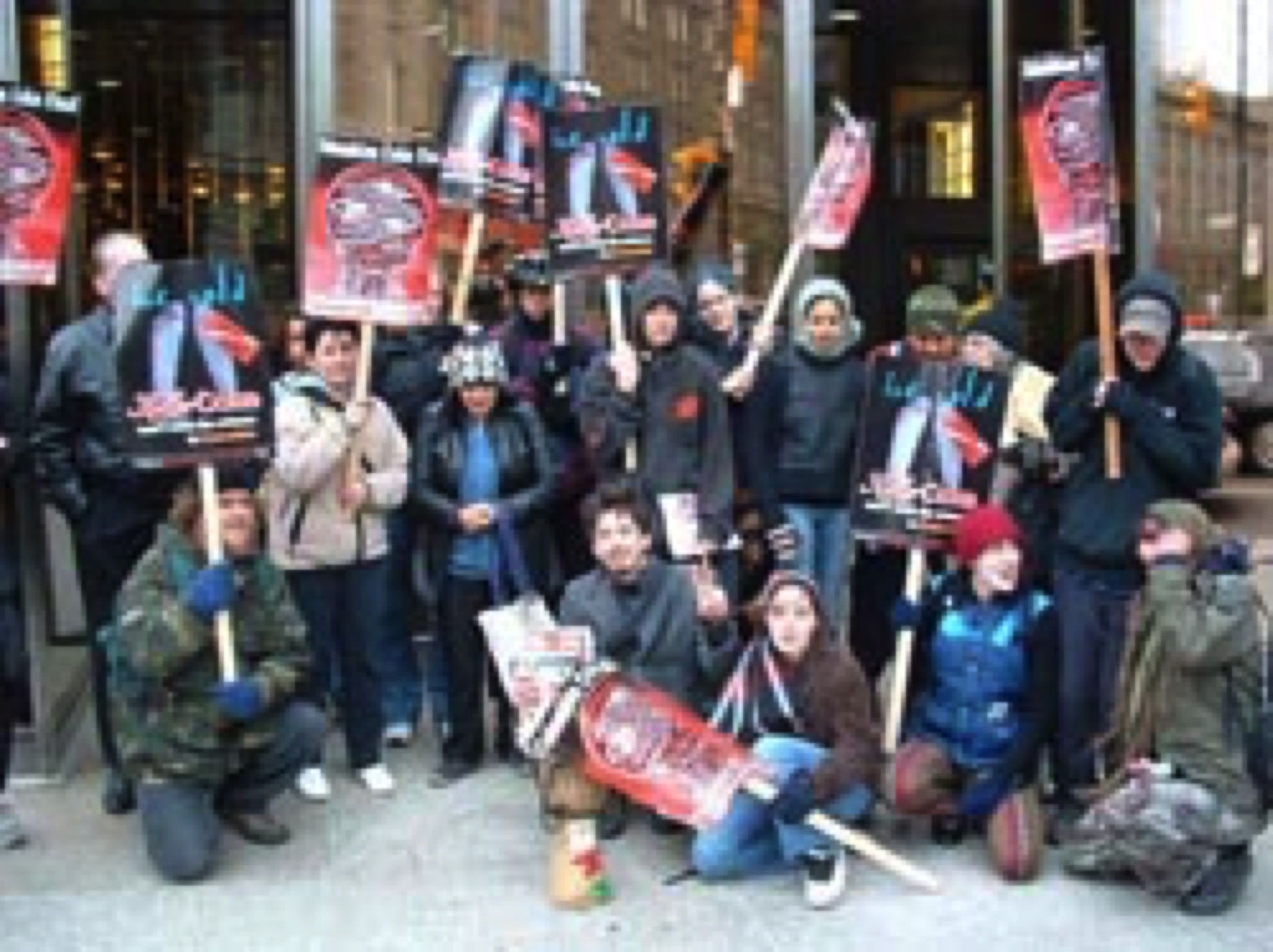 Photo on right: Campaign Director Ray Rogers and John Clarke Organizer of the "Ontario Coalition Against Poverty" (OCAP)