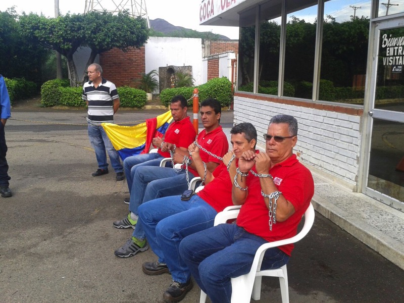 Trabajadores al Servicio de Coca Cola, Afiliados a Sinaltrainal, desde las Horas de la Madrugada del 22 de Mayo de 2015, Permanecen Encadenados a la Entrada de las Factorías de la Multinacional en Cúcuta, Bucaramanga, Barrancabermeja, Cali, Medellín y Barranquilla