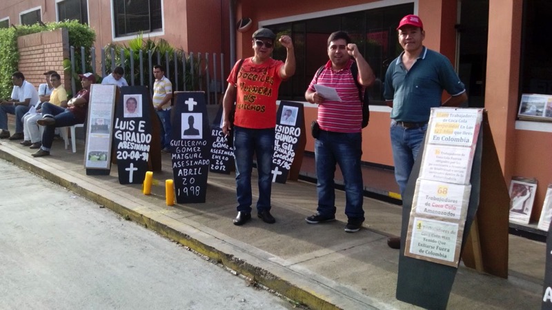 Por denunciar que Coca Cola consume desproporcionalmente agua, contamina ríos, humedales y el medio ambiente, se beneficia de rebajas de impuestos, que con las Tiendas Oxxo arruinará a tenderos y comerciantes, sus negociaciones con jefes paramilitares, la tercerización y precarización de los trabajadores y por exigir alimentos sanos para proteger la salud de los consumidores, entre otros problemas, los trabajadores al servicio de las embotelladoras de Coca Cola, afiliados a Sinaltrainal en Colombia, somos víctimas una política de persecución y exterminio.